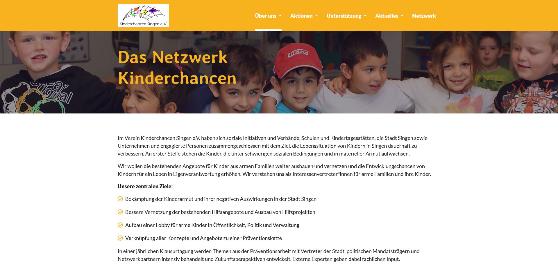 Der Verein Kinderchancen e.V. Singen ist ein Netzwerk das sich rund um das Thema „Kinderarmut“ kpümmert. In der Stadt Singen ist ungefähr jedes 5. Kind von Armut betroffen. Das ist doppelt so viel als im Landesdurchschnitt. Mit dem Ziel sich gegen Kinderarmut einzusetzen, trafen sich im Jahr 2008 einige engagierte Menschen aus Wohlfahrtsverbänden, Firmen, Schulen und der Stadt Singen an einem ersten, gemeinsamen „Runden Tisch“ und gründeten kurze Zeit später den Verein Kinderchancen e.V..